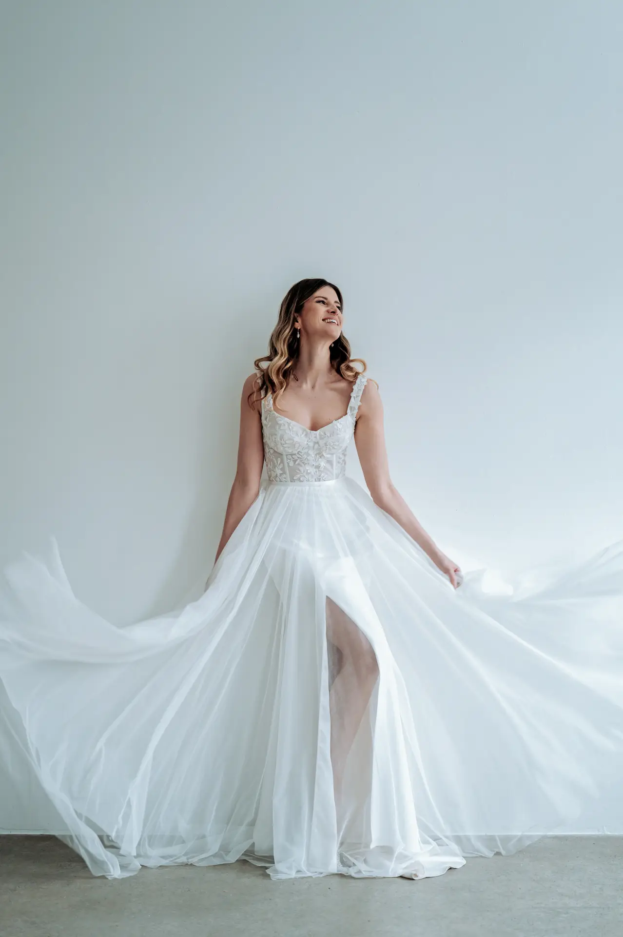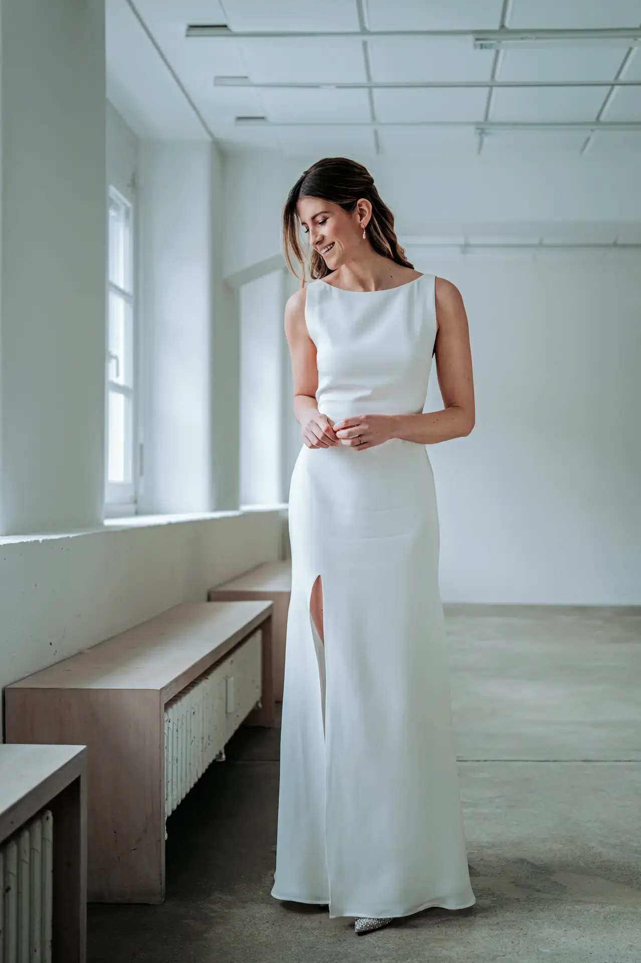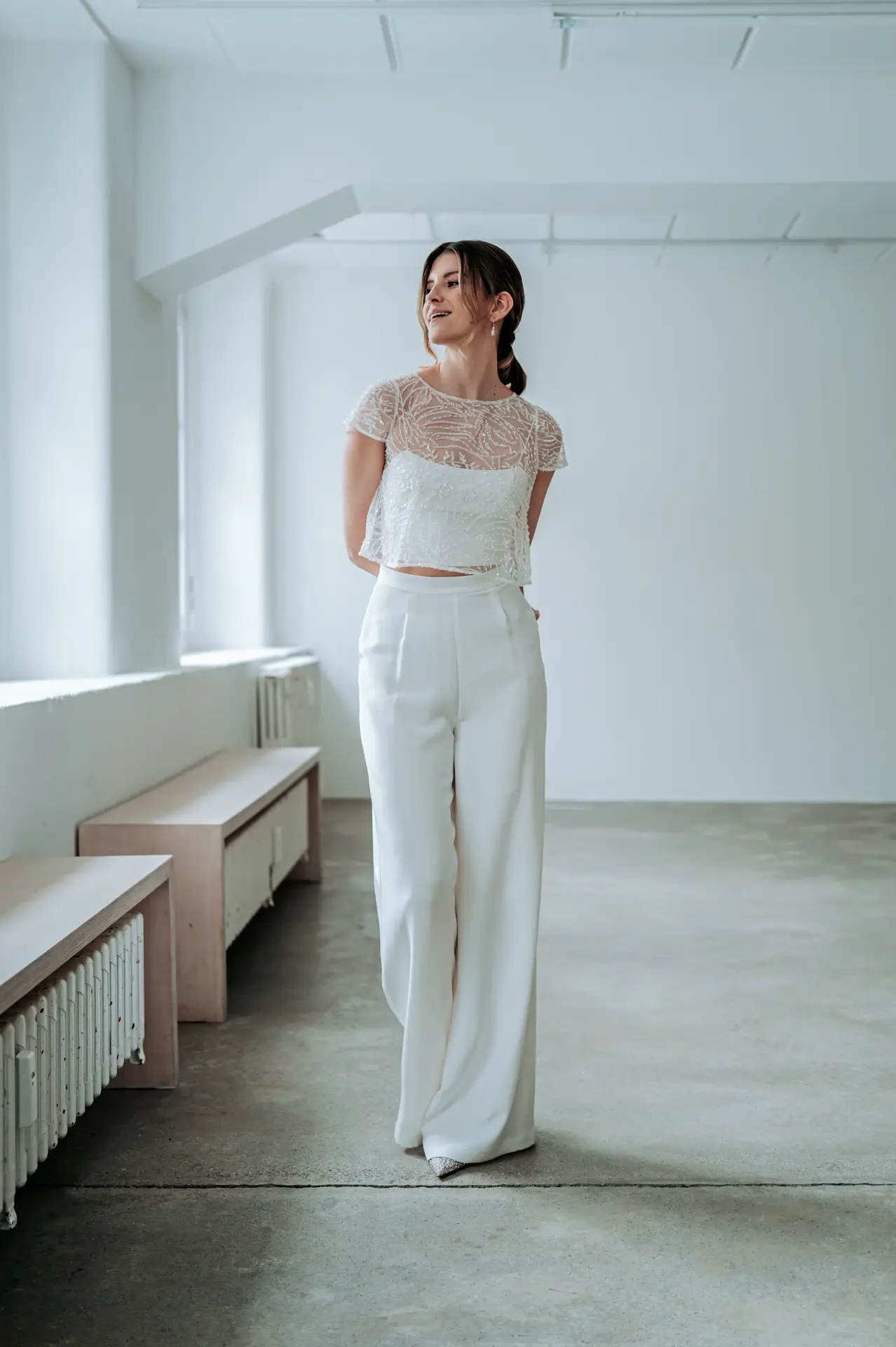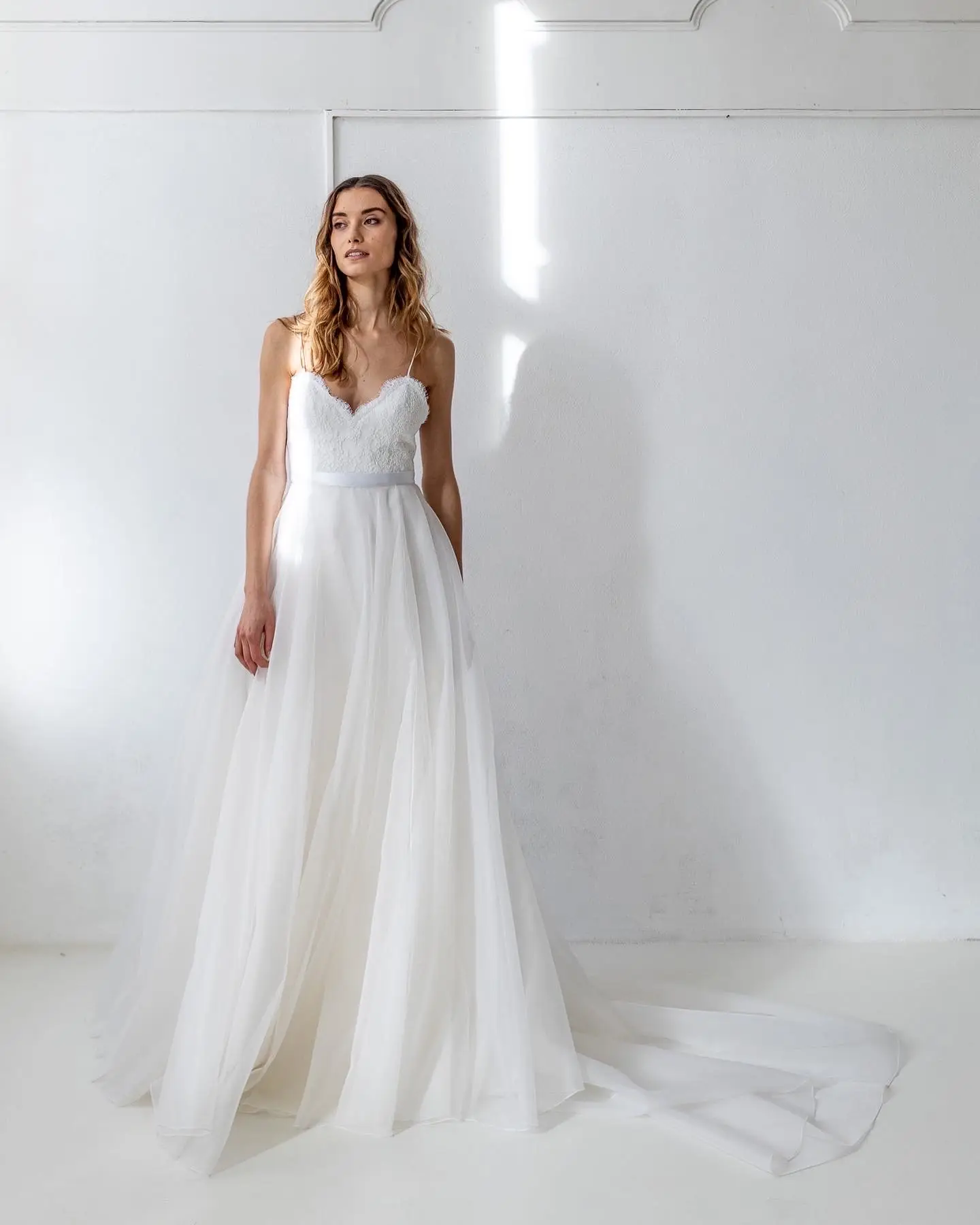 Bei deiner ersten Anprobe stehen dir unterschiedlichste Brautoutfits zur Verfügung. Schlüpfe in das ein oder andere Brautkleid oder probiere aus, ob du dich in einem Zweiteiler wohler fühlst. Die Röcke und Oberteile lassen sich auf verschiedene Weise miteinander kombinieren. Stelle dir deinen Look also einfach INDIVIDUELL zusammen! Das Schöne daran: Du kannst das Ensemble, oder Teile davon, auch nach der Hochzeit noch öfter tragen.